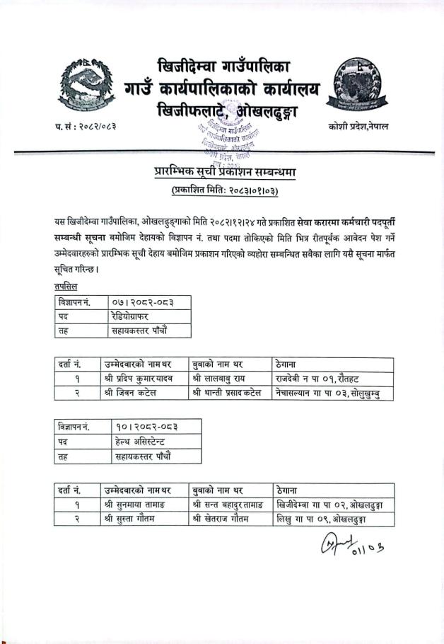 » प्रारम्भिक सूची प्रकाशन सम्बन्धमा!