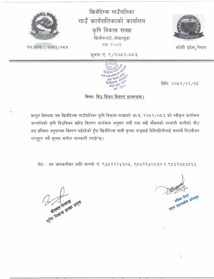 बिउ बिजन वितरण सम्बन्धमा!!