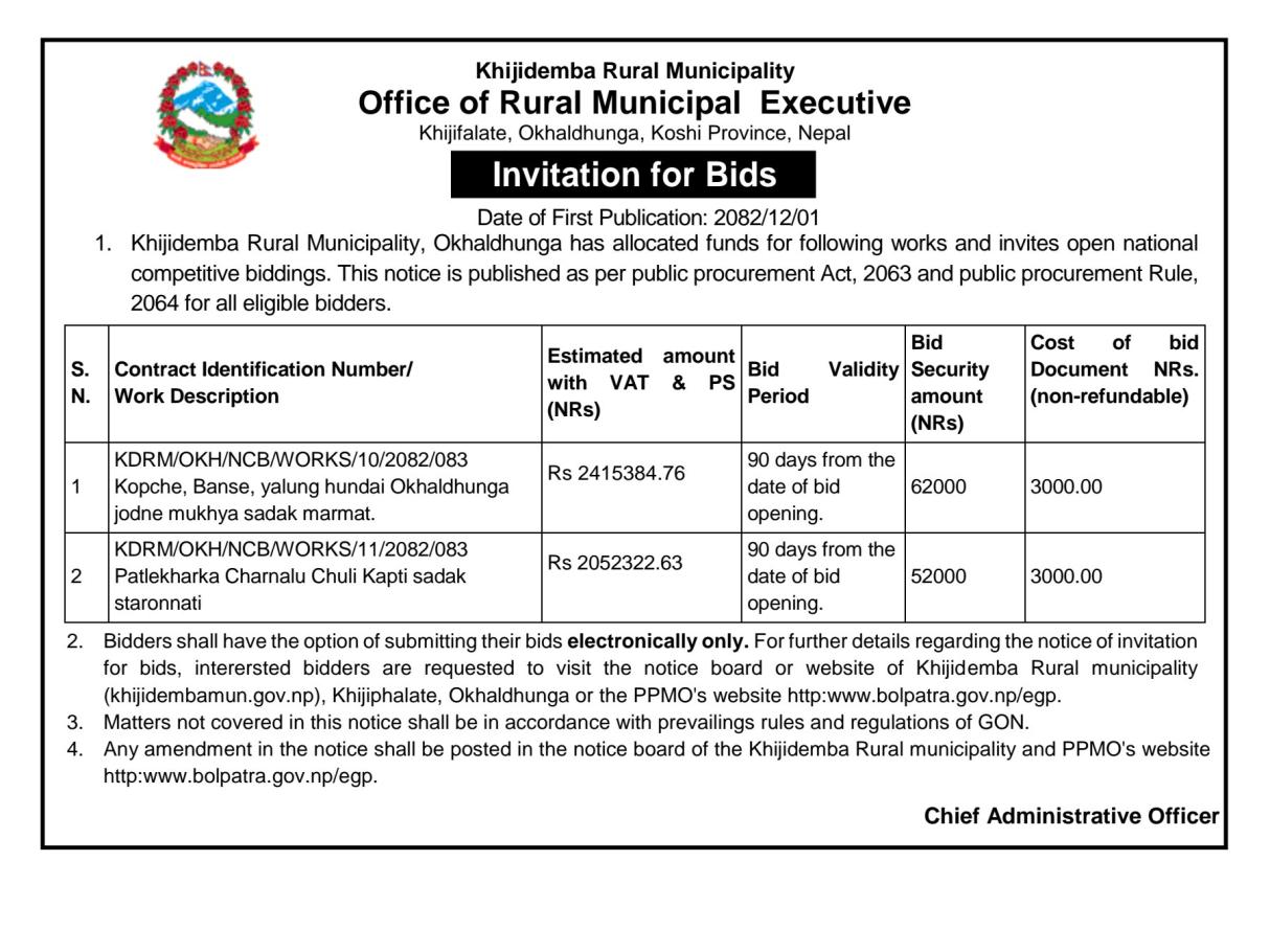 विद्युतीय बोलपत्र आह्वान सम्बन्धी सूचना !