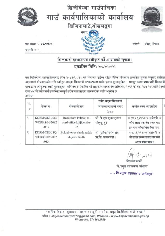 सिलबन्दी दरबाउपत्र स्वीकृत गर्ने आशयको सूचना