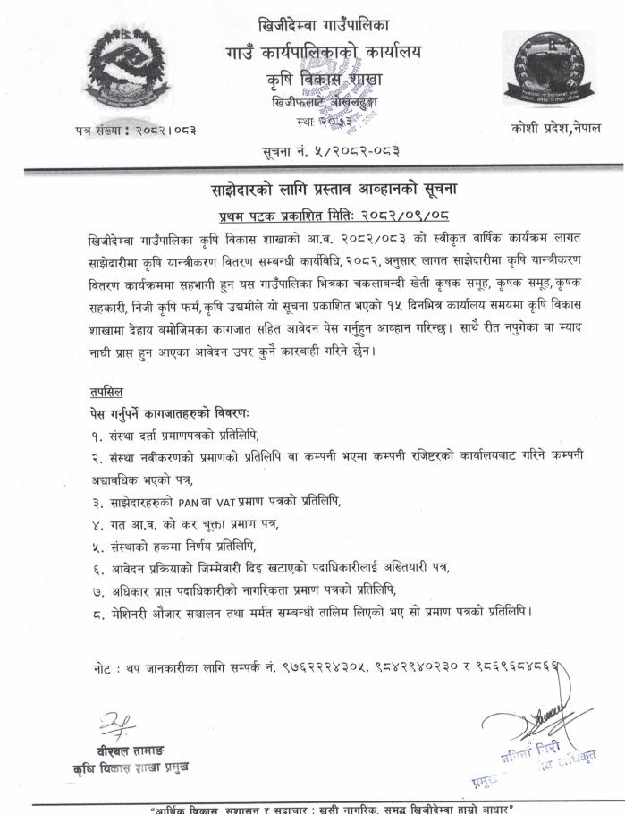 साझेदारको लागि प्रस्ताव आह्वानको सूचना!