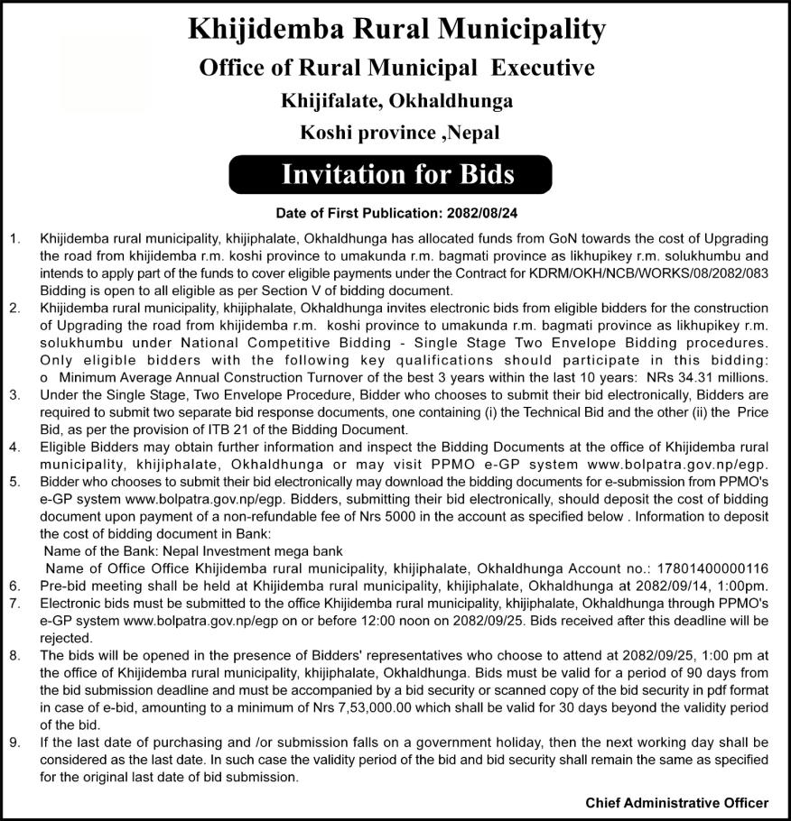 विद्युतीय बोलपत्र आव्हान सम्बन्धी सूचना!!