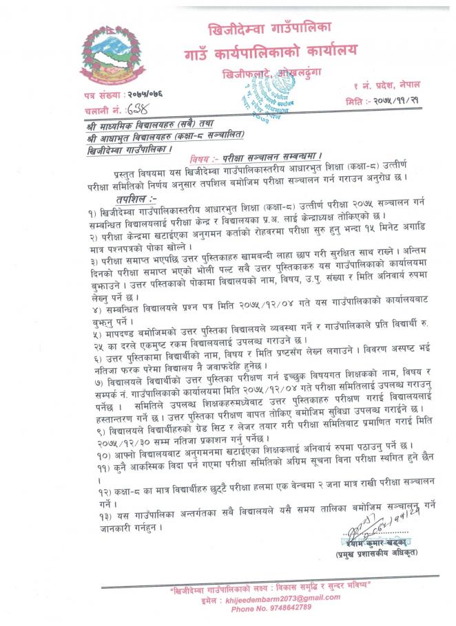 खिजीदेम्बा गाउँपालिका अन्तर्गतका सबै सामुदायिक विध्यालयहरुको शैक्षिक वर्ष २०७६ अन्तर्गत कक्षा ८ को नतिजा प्रकाशन गरिएको सम्बन्धमा!!